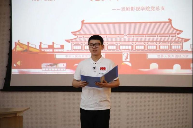 戏剧影视学院“薪火”宣讲团成员孙培文为现场师生进行宣讲