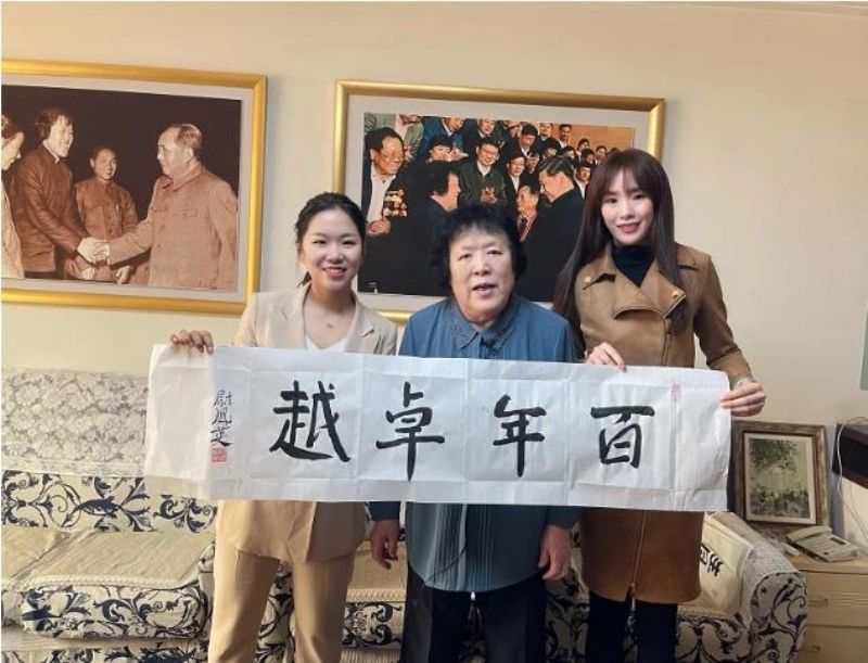 2021年3月,戏剧影视美术设计系教师和学生代表来到“毛主席的好工人”、“最美奋斗者”、全国劳动模范、全国工人先锋号、全国五一劳动奖状和奖章获得者尉凤英老人家中进行寻访。尉凤英老人先后受毛主席接见13次,习近平总书记接见3次,是全国工人阶级的楷模。采访中尉老的一句话成为师生心目中的经典,广为传颂:“工作上我退休了,但是做党员我永远不退休。”她还反复叮嘱同学们:年青一代要奋斗,要珍惜时光、善于思考,要传承鲁艺精神,为祖国文化艺术事业添砖加瓦。采访结束的时候,尉老亲笔为《百年卓越》系列活动题写了两幅字——“百年卓越”“劳动光荣”。