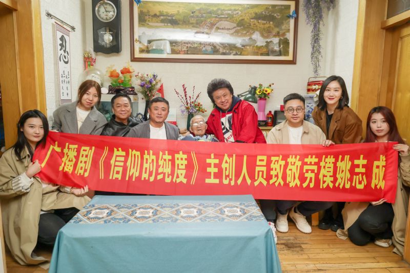 为弘扬劳动模范精神,发挥劳模示范引领作用,形成崇尚劳模、尊重知识、尊重人才的良好学院氛围,在“五一”国际劳动节来临之际,4月29日,广播剧《信仰的纯度》剧组主创人员来到沈飞劳模——95岁高龄的航空科技工程师姚志成家中,向姚志成老人及其家人致以节日的问候和诚挚的敬意。