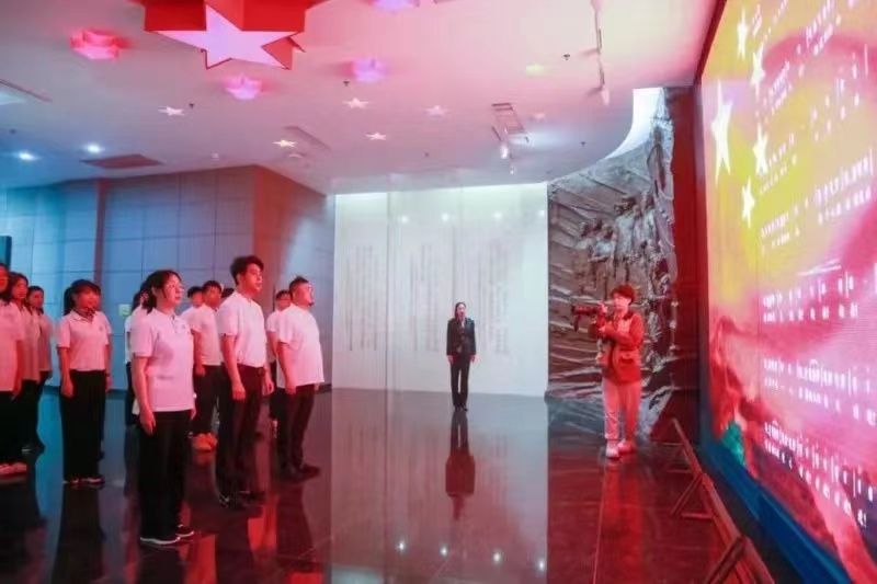 在东北抗日义勇军纪念馆一楼序厅,党总支临时负责人、院长杨喆带领师生党员重温入党誓词。在讲解员的带领下,师生们先后参观了主题展厅、国歌厅、英烈祭祀厅,详细了解了东北各阶层民众和东北军爱国官兵奋起抵抗日本侵略者的历史史实和艰难历程,更深入地学习了新中国国歌的诞生过程、创作背景、歌词内容及其特殊意义。