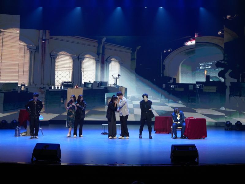 来自播音与主持系2022级的王楚晴、邵嘉毅,2023级的于博钧、陈思睿、郑颜卓和2024级的陈鹏宇担任晚会主持人。他们凭借清新阳光的舞台形象、沉稳睿智的主持风格和极佳的舞台表现力和掌控力,成为晚会上一道亮丽的风景线。
