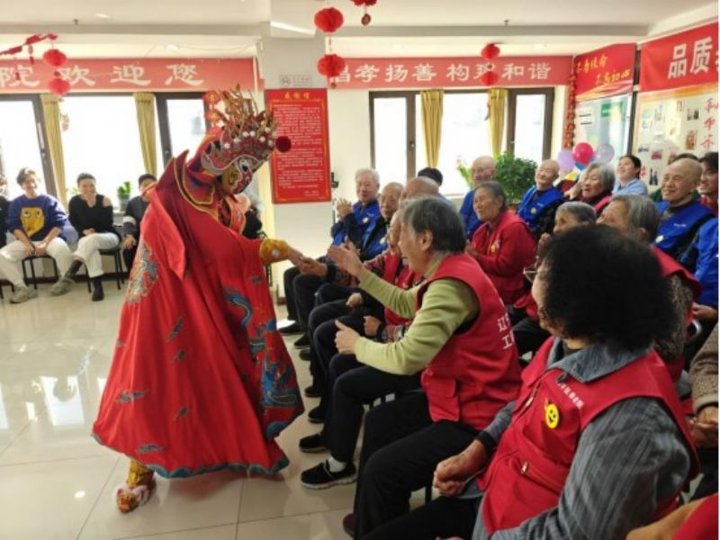 当天下午,养老院一楼大厅座无虚席,老人们早早落座,翘首以盼师生们的到来。“你的心情,现在好吗?你的脸上,还有微笑吗……”一曲《祝你平安》拉开演出的序幕。舞蹈《踏浪》迎着徐徐微风踏浪而来,快板《学雷锋》生动形象讲述了雷锋一个个无私奉献、助人为乐的故事,将欢乐的气氛瞬间拉满,赢得老人们阵阵掌声。优雅轻盈的歌舞《上春山》、惊艳现场的川剧《变脸》、韵味十足的京剧《定军山》、热情奔放的串烧歌舞,带着爷爷奶奶们时而穿梭在云雾缭绕的春山路上,时而惊艳于色彩斑斓的脸谱之中,时而领略京剧文化的独特魅力,时而感受扑面而来的青春活力。传统文化的深厚底蕴和时代新声的青春气息,给老人们带来别开生面、耳目一新的视听享受。“日落西山红霞飞,战士打靶把营归,把营归……”养老院活动室里,在同学们的带动下,老人们唱起了《打靶归来》,熟悉的旋律,让他们回忆起往昔的峥嵘岁月,陶醉在美妙的音乐世界。整场演出老人们参与度极高,个个喜上眉梢,笑声、掌声、歌声不断,欢声笑语在养老院内久久回荡,真挚的关怀如丝丝细雨般滋润着老人们的心田。