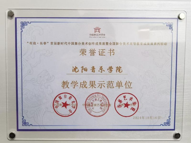 此外,经过组委会专家组评选,我院参展作品从众多优秀作品中脱颖而出。中国舞台美术学会授予沈阳音乐学院“教学成果示范单位”荣誉称号。这不仅是对我院戏剧影视美术设计专业多年教学成果的肯定,同时也将激励鞭策广大教师不断提高教育教学水平,努力培养更多德才兼备的优秀艺术人才,为加快推进文化振兴,更好服务文化强国建设作出新贡献。