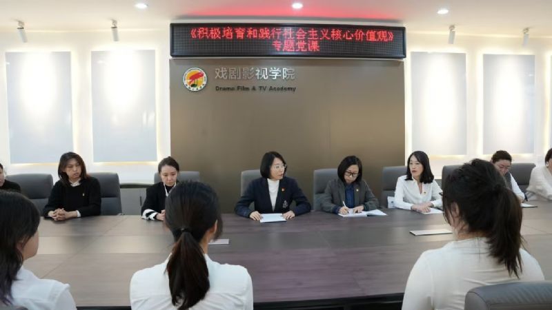 党委副书记石爽为广播电视编导系的师生党员和入党积极分子作了题为《积极培育和践行社会主义核心价值观》的形势政策报告。她从社会主义核心价值观的提出背景入手,重点阐述了抓好青年价值观养成及青年扣好人生第一粒扣子的重要性。她强调,艺术院校专业教师要充分发挥优秀文艺作品的熏陶教化作用,将理想信念、价值理念和道德观念植根于学生心中、反映在创作之中,将培育和践行社会主义核心价值观融入教育教学全过程,鼓励学生下得苦功夫、求得真学问,加强道德修养、注重道德实践,善于明辨是非、善于决断选择,扎扎实实干事、踏踏实实做人。