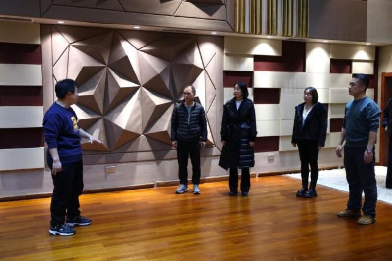石爽一行参观了沈阳广播电视台的杜比沉浸式影音工坊、“沈阳之声”和“98.6”节目演播间等,了解沈阳广播电视台的发展历程、节目制作及设备运行情况,并与相关负责人座谈交流。