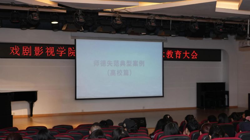 为进一步加强师德师风建设,落实落细师德师风建设责任,教育引导广大教师时刻绷紧师德师风之弦,切实提升教师职业素养与道德修养,3月5日,戏剧影视学院召开2025年师德师风警示教育大会。学院党委书记刘纪刚、副院长朱晏锋、副院长王莹,各系、各部门负责人、党支部书记,全体教职工参加会议。会议由王莹主持。