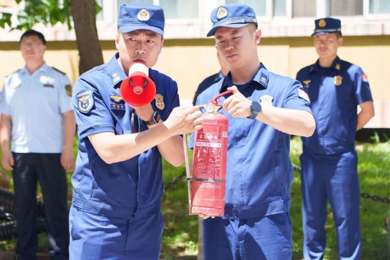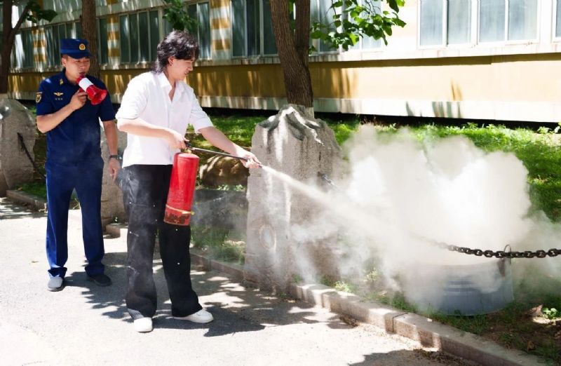 模拟灭火现场,三级消防长刘明挥与三级消防士陈秋明为师生详细讲解了火灾中的正确逃生技巧,现场演示了干粉灭火器及消防栓的正确使用方法,并组织师生进行了实操练习。