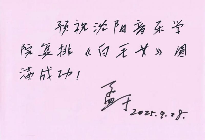 孟于老师为学院复排歌剧《白毛女》写下祝福语