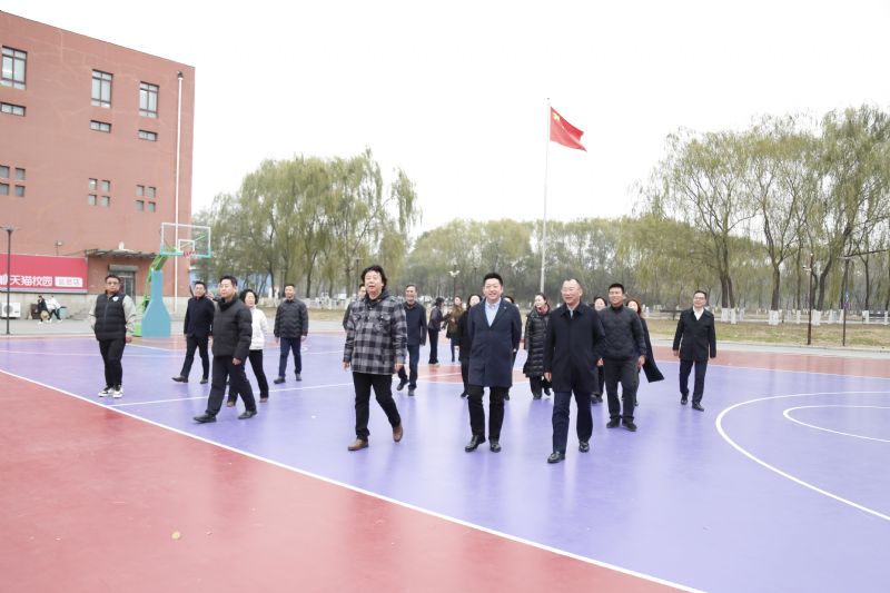 仪式结束后,学院领导一行实地参观了荷风书苑,对阅览区的功能布局、资源建设及智能化服务给予充分肯定。随后,他们沿荷花池步道深入了解景观改造的生态理念与人文内涵,并在升级后的运动场驻足体验。田彦与运动场上的学生亲切交流,与同学们开展投篮互动,现场气氛温馨热烈。这生动的一幕,正是学院美丽校园建设以师生为本的鲜活写照。