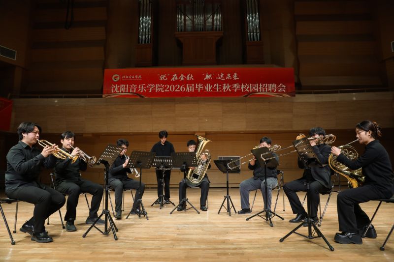 招聘会上,近40名毕业生现场演出了舞蹈《清风徐来》、铜管打击乐重奏《中国军魂》《歌唱祖国》以及民族室内乐重奏《风吹·山海关外》等节目。学生们以精湛的专业技艺获得了用人单位的一致好评。专业展演结束后,2026届毕业生与用人单位进行现场交流洽谈。现场毕业生共投递简历640余份。招聘会前,辽宁省文体旅集团人才发展有限公司总经理王忠超与参会单位代表参观了学院校史馆。