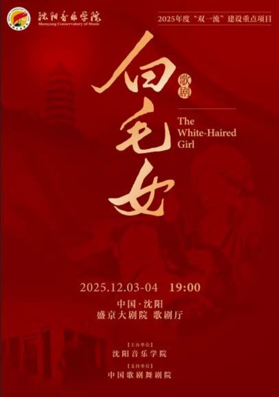 12月3日至4日由沈阳音乐学院演出,中国歌剧舞剧院支持的民族歌剧《白毛女》将在盛京大剧院拉开帷幕;