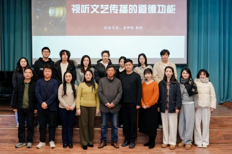 12月1日,辽宁大学马可·穆勒电影艺术研究院院长、教育部高等学校戏剧与影视学类专业教指委委员、博士生导师庚钟银教授应邀莅临我院,作《视听文艺传播的道德功能》学术讲座。院长朱晏锋主持,副院长王莹、各系负责人及师生代表参会。