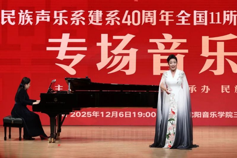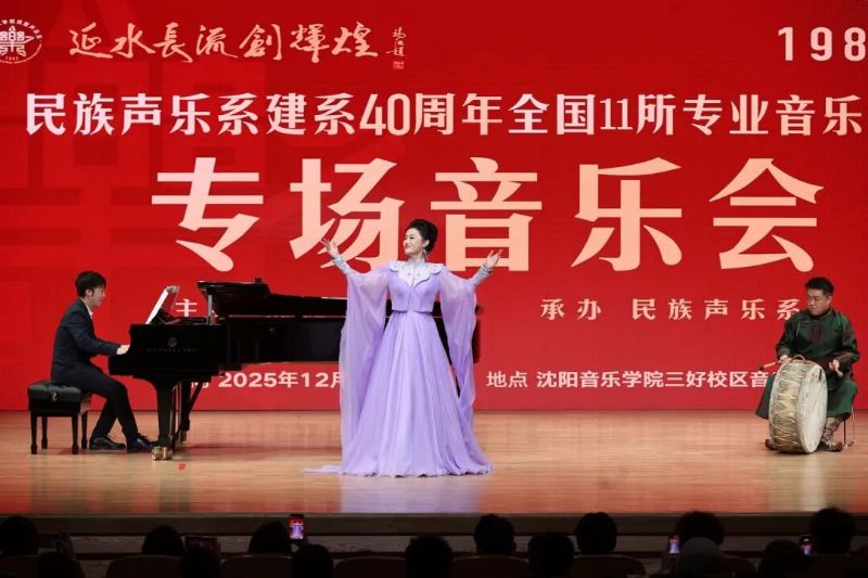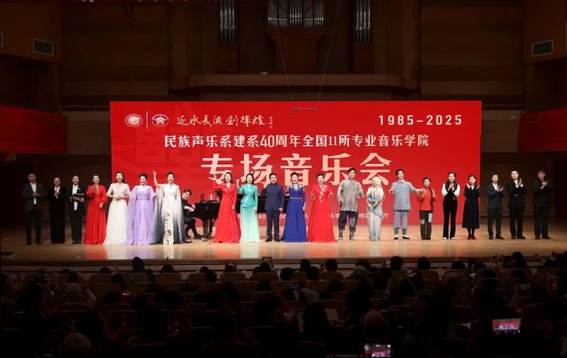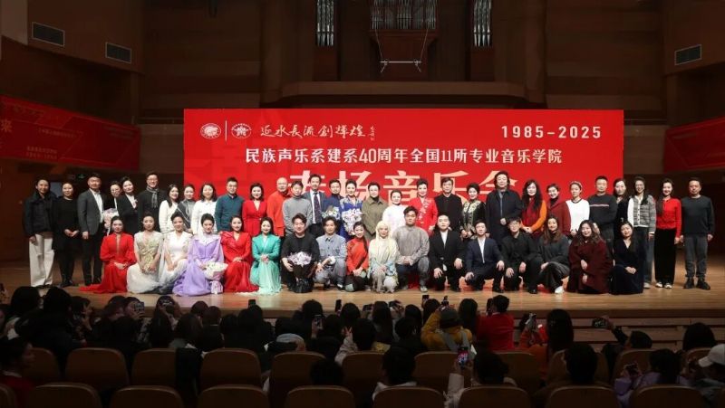 音乐会由民族声乐系主任匡祎主持。音乐会在全体演员共同演唱的《我和我的祖国》歌声和现场观众如潮的掌声中圆满落幕。四十年薪火相传,四十年笃行不辍。民族声乐系自建系以来,始终秉持“传承民族文脉、培育声乐人才、弘扬民族精神”的初心,深耕教学、桃李芬芳,为中国民族声乐事业的发展输送了大批优秀人才。本次全国11所专业音乐学院专场音乐会,既是民族声乐教育界一次高水平的交流盛会,更是民族声乐艺术薪火相传、生生不息的生动见证。未来,民族声乐系将继续以传统为根基、以创新为方向,深化教学改革,拓展艺术实践,在坚守中发展,在传承中超越,努力培养更多德艺双馨的声乐人才,为中国民族声乐事业的繁荣与发展谱写更加辉煌的篇章。