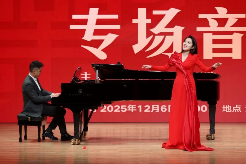 中央音乐学院黄华丽教授演唱了民族歌剧《野火春风斗古城》选段《思儿》。她以深挚动人的歌声,将杨母对儿子的牵挂与思念娓娓道来,赋予每个音符真切的情感张力。随后,她与全场观众共同演唱《龙船调》,不仅让观众现场体会到民族声乐的动人魅力,更充分展现出中国民族音乐深厚的文化底蕴。