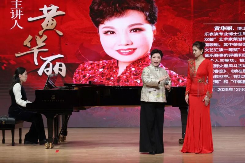 12月7日,著名女高音歌唱家、一级演员,中央音乐学院声乐歌剧系首位民族声乐表演专业博士生导师黄华丽教授应邀来院,以《美好的歌唱》为题,为师生带来了一场兼具理论深度与实践指导意义的学术讲座。来院参加民族声乐系建系40周年活动的全国各兄弟院校代表、业界专家、校友与民族声乐系全体师生共同聆听讲座,讲座由民族声乐系主任匡祎主持。