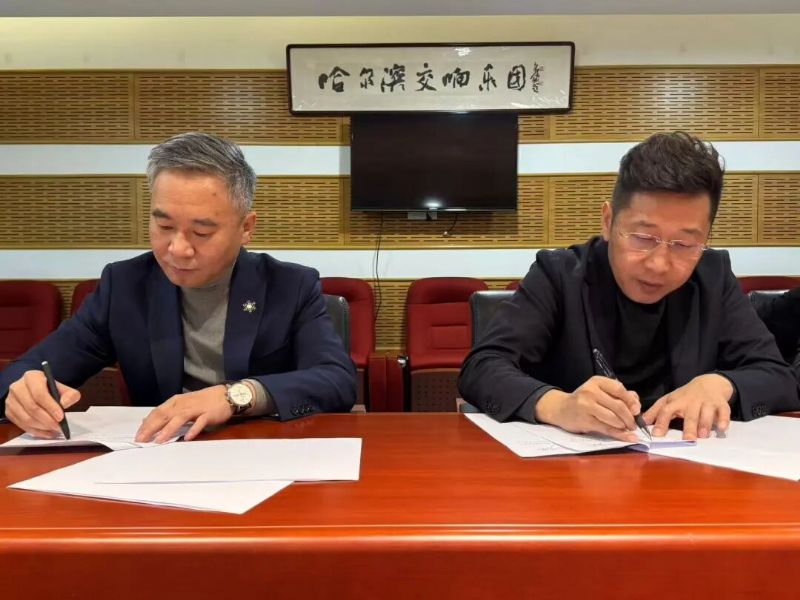 副院长庞渤与哈尔滨交响乐团党委书记齐旭光分别代表双方签署合作协议