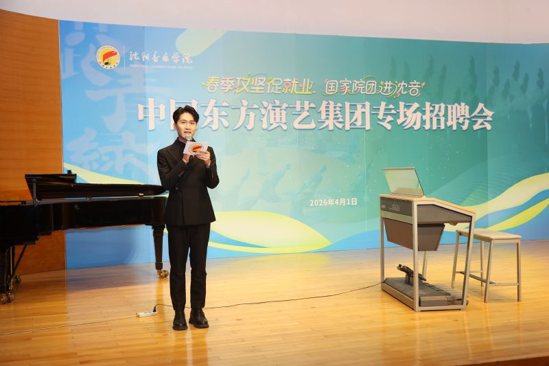 为贯彻落实国家及辽宁省关于高校毕业生就业创业工作的部署,抢抓春季招聘关键期,全力促进2026届毕业生实现高质量充分就业,4月1日,学院举办2026届毕业生“春季攻坚促就业 国家院团进沈音”中国东方演艺集团专场招聘会。此次招聘会是中国东方演艺集团首次走进高等艺术院校开展公开招聘,也是首次面向沈阳音乐学院毕业生举办的专场招聘活动。中国东方演艺集团副总经理张蕾一行,学院党委副书记、院长田彦,副院长庞渤、张策出席招聘会,学院百余名毕业生参加招聘会。