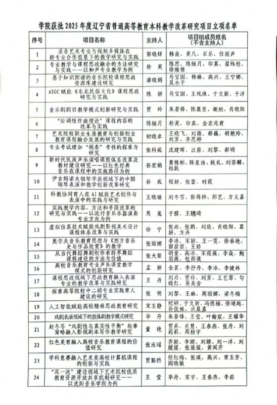 沈阳音乐学院24项成果获批2025年度省级本科教改立项
