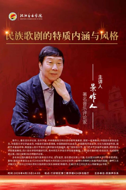 《民族歌剧的特质内涵与风格》学术讲座主讲人:景作人