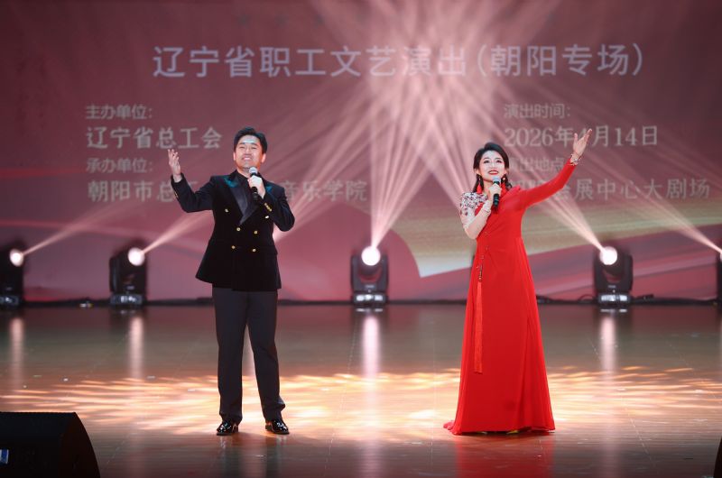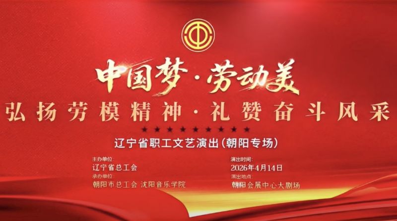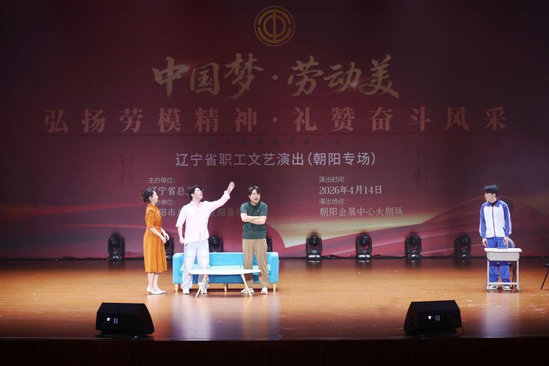 4月14日,由辽宁省总工会主办,朝阳市总工会与沈阳音乐学院共同承办的“中国梦•劳动美——弘扬劳模精神•礼赞奋斗风采”辽宁省职工文艺演出(朝阳专场),在朝阳会展中心大剧场精彩上演。本场演出是2026年省总工会送戏到基层系列活动之一,也是“中国梦•劳动美”系列主题教育活动职工文艺巡演的第二站。省总工会、朝阳市有关领导,沈阳音乐学院副院长张策,出席朝阳市劳动模范、先进工作者和先进集体表彰大会的全体获奖集体、劳动模范和职工代表800余人共同观看演出。