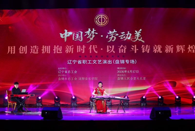 4月17日晚,由辽宁省总工会主办,盘锦市总工会、沈阳音乐学院共同承办的“中国梦·劳动美——用创造拥抱新时代 以奋斗铸就新辉煌”辽宁省职工文艺演出(盘锦专场),在盘锦人民会堂大礼堂精彩上演。此次演出是2026年省总工会送戏到基层系列活动之一,也是“中国梦•劳动美”系列主题教育活动职工文艺巡演的第三站。省总工会、盘锦市有关领导、沈阳音乐学院副院长张庆玫,盘锦市劳动模范、一线职工、工会干部代表共600余人观看了这场致敬劳动的文艺盛宴。