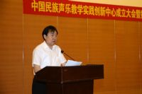 刘辉代表我院讲话。他说,“中国民族声乐教学实践创新中心”在我院成立,既是一项光荣的使命,更是一份义不容辞的责任。我们深切地感到,成立“中国民族声乐教学实践创新中心”,意味着我们肩上的担子更重了,就是要更好地传承和发展中华优秀音乐文化,更好地探索民族声乐人才培养的新模式、新方法,更好地开展创新、创业课程,更好地服务社会、服务人民、服务时代。沈阳音乐学院将通过认真贯彻落实习近平同志系列讲话要求,培养高水平、高质量、符合社会需求的民族声乐人才,不辜负群众及社会各界对民族声乐教育的期望,坚持发展民族声乐这个中国老百姓喜闻乐见的艺术形式。沈阳音乐学院将以专业发展为主旨,以人才培养为核心,以协同创新为重点,以项目建设为龙头,展现高等艺术教育的社会价值,为实现中华民族的伟大复兴、实现中国梦、实现中国音乐文化屹立于世界艺术之林做出我们应有的贡献。