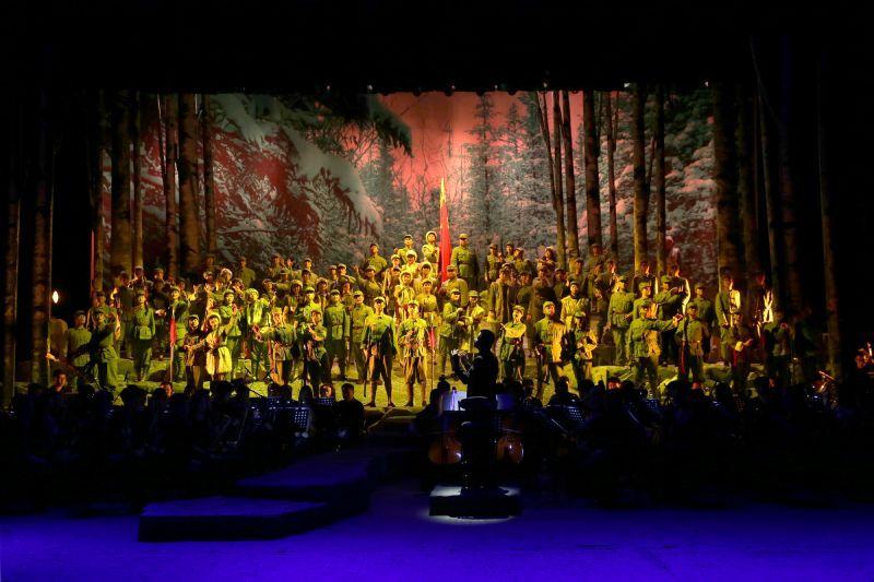 6月22日,由学院重新创编排演的大型经典民族歌剧《星星之火》在长青校区音乐剧场为驻沈某部官兵倾情上演,驻沈某部官兵观看了演出。
