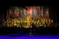 歌剧《星星之火》以跌宕起伏的剧情、精心布置的舞台场景、耳熟能详的经典旋律、激昂壮阔的交响音乐、别具一格的合唱形式,呈现给观众一场新颖、精彩的歌剧盛宴。演出在舒缓的合唱中缓缓拉开帷幕,演员将自己深挚的情感融入到演唱中,《火啊火》《穿过密密的青松林》《我是个穷苦的小姑娘》等精彩唱段,将观众带到烈火硝烟的战争年代。东北抗联战士的凛然正气、视死如归、慷慨赴义的英雄气概,让现场观众在思想上受到深深的震撼。歌剧《星星之火》深沉震撼的音乐、生动真实的布景、演员声情并茂的演唱,给观众强烈的视听感受。当《革命人永远是年轻》的经典旋律响起的时候,将现场气氛推向高潮,台上台下共同唱起这段经典的旋律,雄壮的歌声在音乐剧场上空久久回荡。