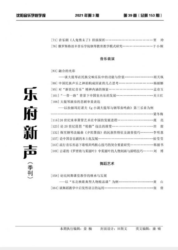 《乐府新声》2021年3、4期目录