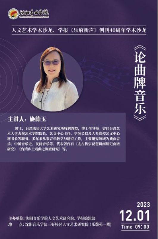 预告丨 学术沙龙 施德玉:论曲牌音乐