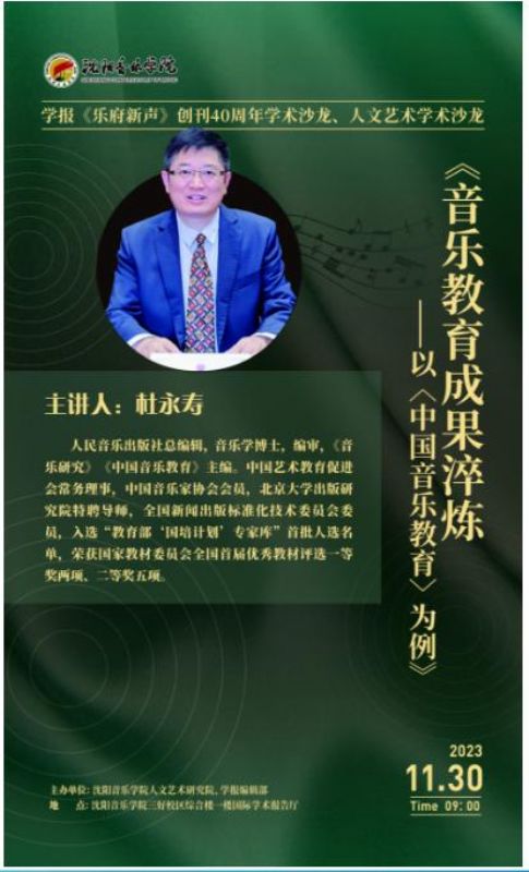 预告丨学术沙龙 杜永寿:音乐教育成果淬炼——以《中国音乐教育》为例