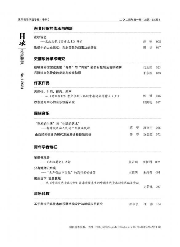 《乐府新声》2024年第1期目录