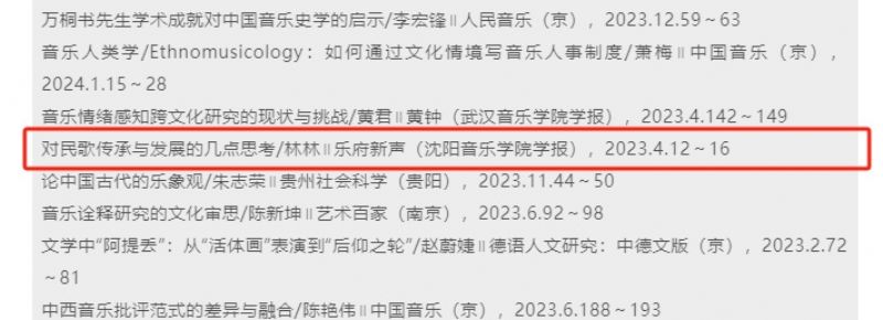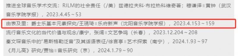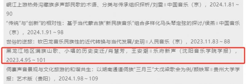 沈阳音乐学院学报《乐府新声》(2023年第4期)作者林林发表的《对民歌传承与发展的几点思考》,作者肖慧芳,王安潮发表的《黑龙江地区满族山歌、小唱的历史变迁》和作者王琇琦发表的《由表及里:爵士乐基本元素探究》均被中国人民大学书报资料中心《舞台艺术(音乐、舞蹈)》论文索引(2024年第3期)收录。