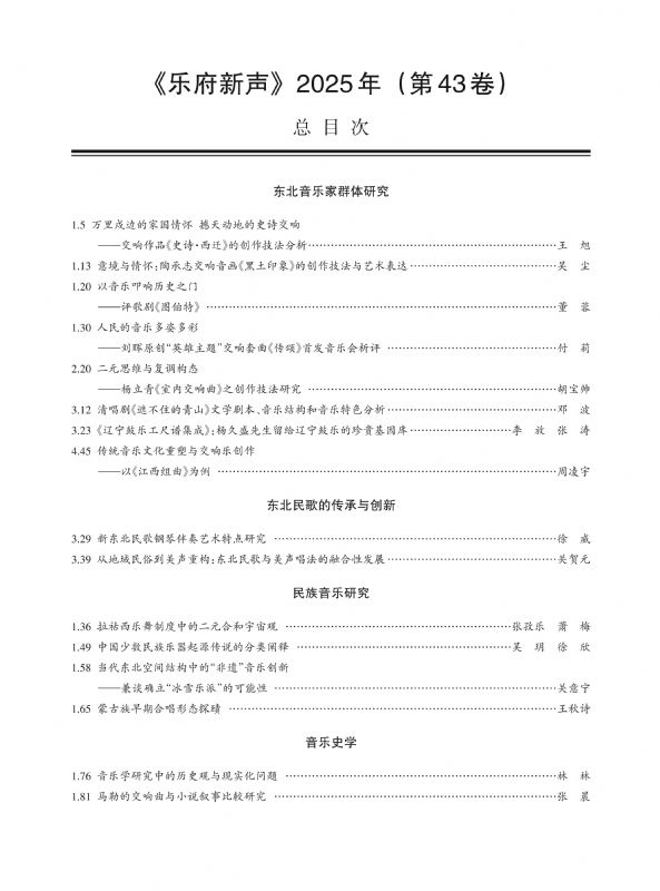 《乐府新声》2025年第4期目录