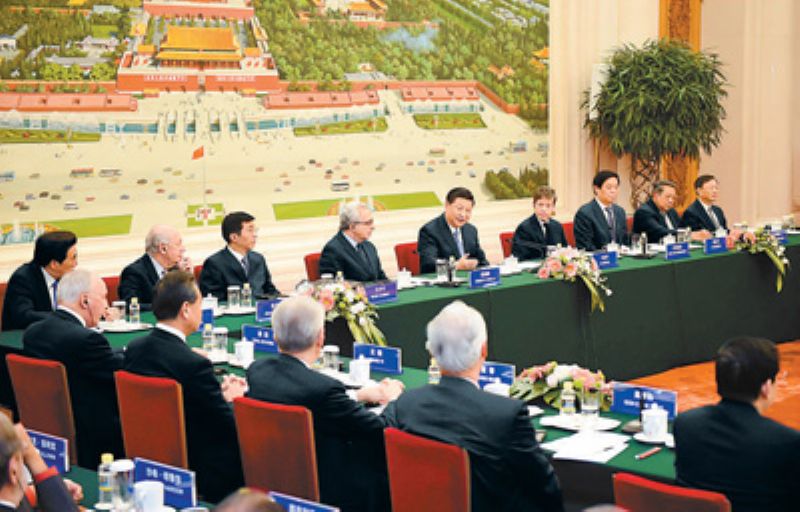 墨西哥前总统、21世纪理事会主席塞迪略,贝格鲁恩研究会主席贝格鲁恩,新加坡前总理吴作栋,澳大利亚前总理陆克文,美国前财政部长萨默斯分别发言。他们表示,中国已成为国际社会重要力量,世界未来在很大程度上取决于中国,中国未来也与世界发展息息相关。中国发展对世界有积极意义,国际社会对中方“一带一路”倡议和构建中美新型大国关系的主张等很感兴趣,同时世界需要更准确了解中国、包括了解中国对当今国际秩序和重大全球性问题的看法。中国表明坚持改革开放十分重要,对世界是利好消息。