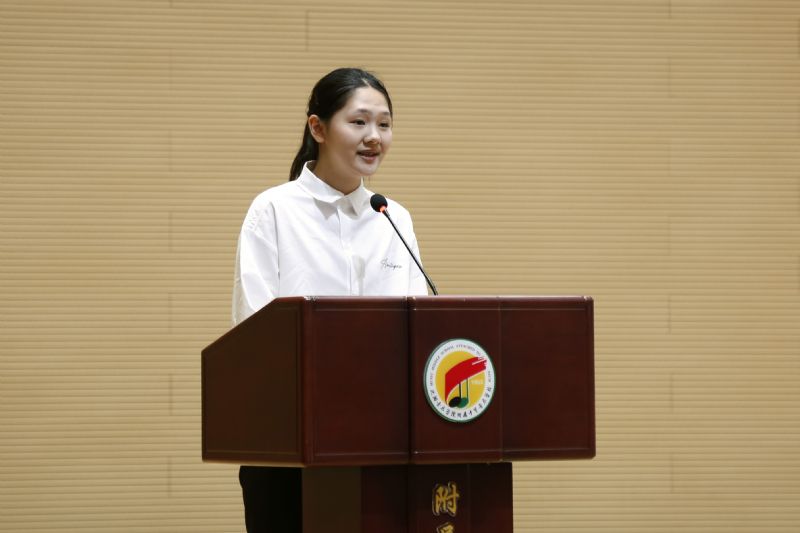 2025级学生杨壹然代表新生发言,言语间满是对音乐未来的憧憬与对梦想的坚定。她表示,踏入沈音附中校门,既是荣誉更是沉甸甸的责任,呼吁全体新生以饱满的热情投入专业学习,用青春汗水浇灌音乐理想,努力成长为有担当的新时代音乐学子。