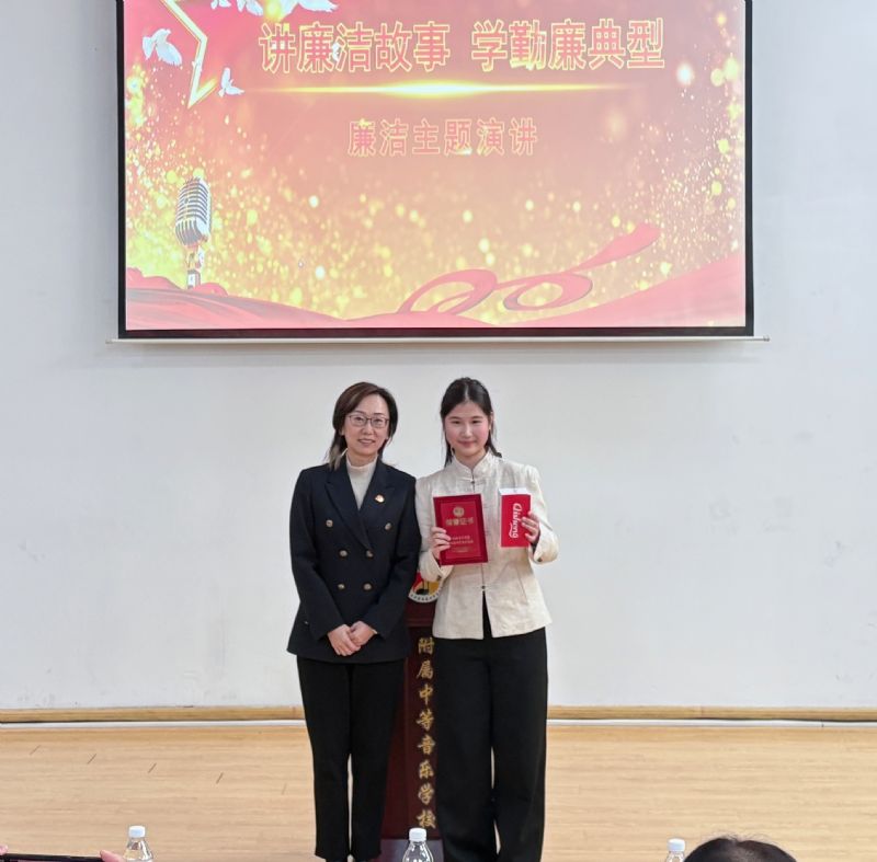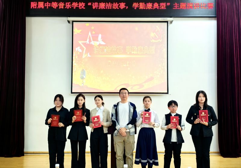清风拂面歌正气,廉韵悠扬润心田。为深耕“廉洁文化创新工程”实践沃土,传承鲁艺精神,引导师生将廉洁基因融入血脉、化为动力,10月24日,附属中等音乐学校开展“讲廉洁故事 学勤廉典型”主题演讲比赛。党总支书记胡术艺、副书记谢晓宇、办公室主任杨松、教学实践管理科科长卢佳璇、文化课教研室副主任秦国胜、文化课教研室语文教研组教师李强出席并担任评委,此外还特邀了我院优秀毕业生——沈音“Yin你而在”自媒体平台创始人王铮和两位戏剧影视学院播音与主持系专业学生担任嘉宾评委。评委们从主题立意、语言表达、形象风度、现场效果等维度进行综合评判。活动中师生共同聆听廉洁之声,共沐清风正气。