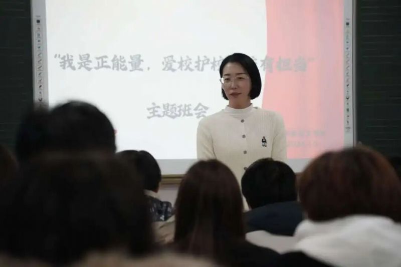 班会围绕理想信念教育、国家安全教育、网络安全教育、心理健康教育等主题,通过交流讨论进一步引导学生深刻理解“爱校、护校、荣校”的含义,激发青年学生爱校护校荣校的热情。班会上,石爽首先引用南开大学首任校长张伯苓的“爱国三问”,激励同学们把个人理想同民族复兴的宏伟目标结合起来,把“小我”融入“大我”,把青春书写在祖国的大地上。同时,她由“爱国三问”引申出“爱校三问”:“你是沈音学子、鲁艺传人吗?”“你爱母校沈音吗?”“你愿意你的母校好吗?”,教育青年学生进一步增强集体荣誉感,树立“校兴我荣,校衰我耻”的思想观念,更多地关心学校发展建设,自觉维护学校声誉和形象。