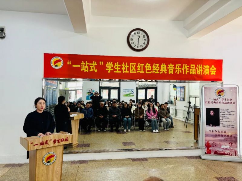 2025年10月24日,由学院举办的第41期“一站式”学生社区红色经典音乐作品讲演会在三好校区“一站式”学生服务中心举行。学生处、音乐教育学院的相关负责人以及50余名学生代表参加讲演会。讲演会由音乐教育学院辅导员刘佳楠主持。