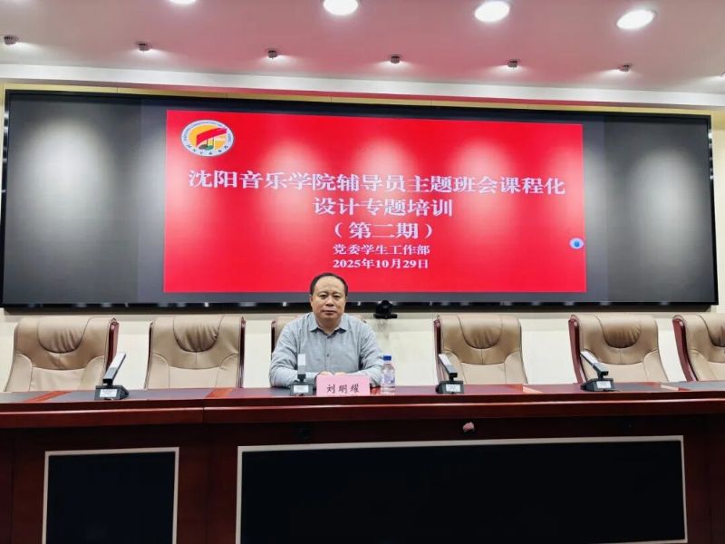 10月29日,沈阳音乐学院第二期辅导员主题班会课程化设计专题培训在三好校区第二会议室举行。党委学生工作部部长王爽、副部长王春生、50余名专职辅导员参加培训。会议由王春生主持。第二期辅导员主题班会课程化设计专题培训会现场