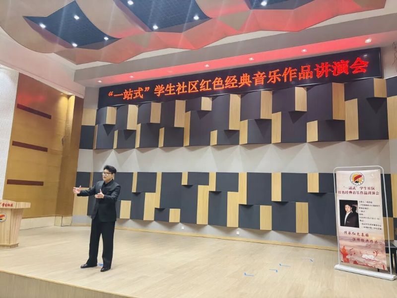 3月27日,由学院举办的第43期“一站式”学生社区红色经典音乐作品讲演会在三好校区“一站式”学生服务中心举行。声乐歌剧系相关负责人及50余名学生代表参与讲演会,讲演会由声乐歌剧系辅导员刘佳楠主持。