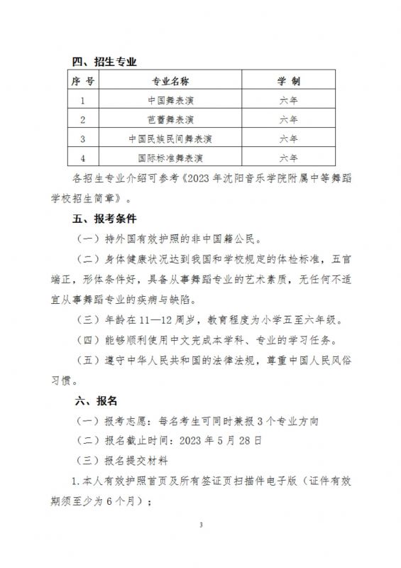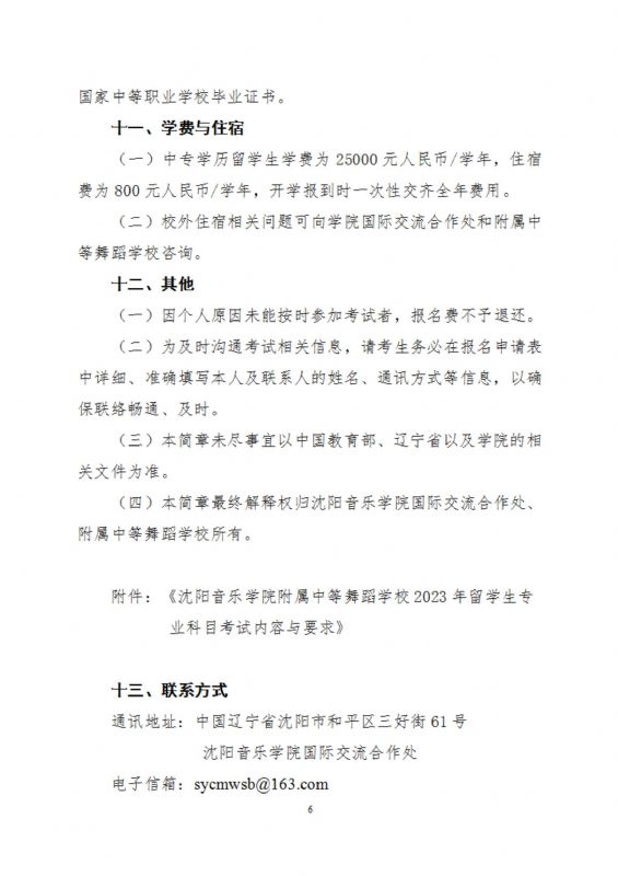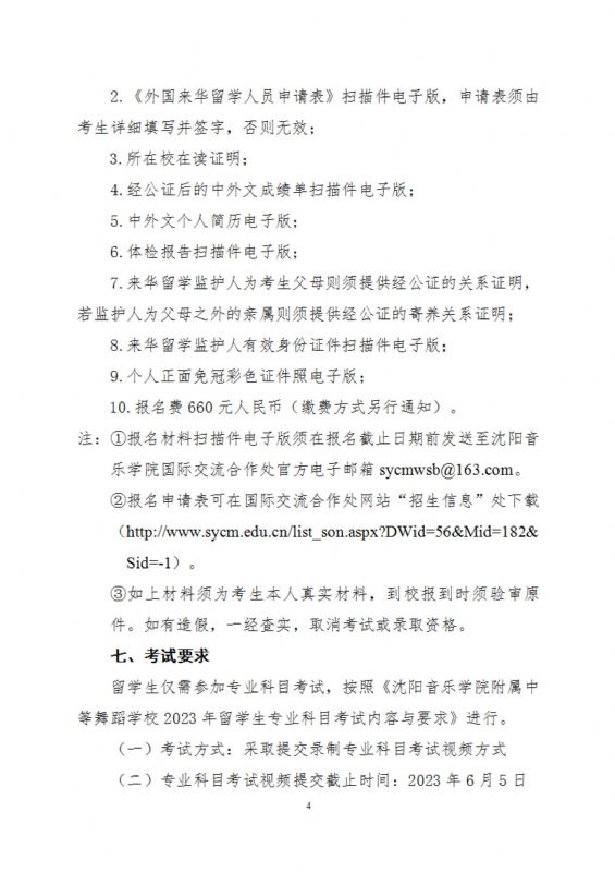 沈阳音乐学院附属中等舞蹈学校2023年留学生专业科目考试内容与要求.pdf
