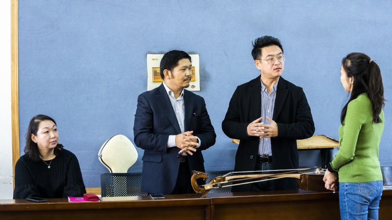 10月15日,蒙古国立文化艺术大学学术事务副校长德•敖都苏荣与马头琴教师普•孟和金来访我院,并举办马头琴学术交流会。本次学术交流会是东北亚国际艺术教育联盟系列活动之一。国际交流合作处相关工作人员及我院师生参加活动。