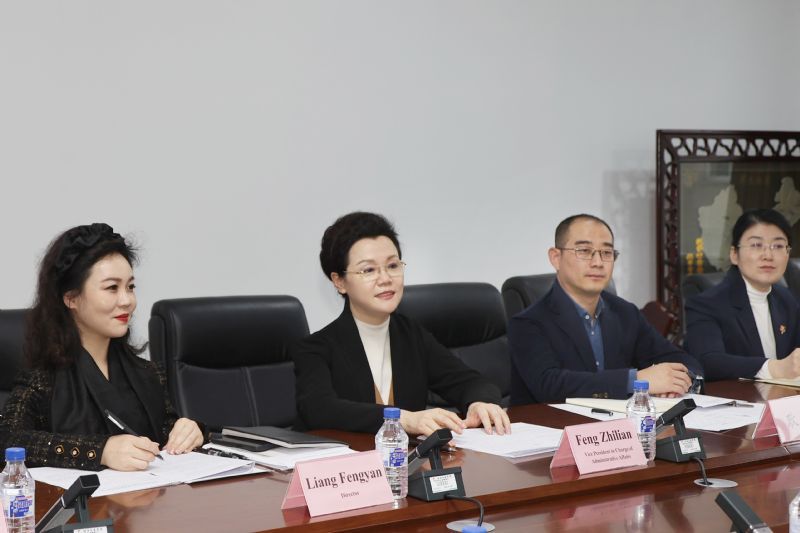11月6日,副院长冯志莲(主持行政工作)会见来访的泰国曼谷吞武里大学教育学院院长卡孟曼·柴西丽塔尼亚(Kamolmal Chaisirithanya)、传媒艺术学院院长苏雅·布拉达查柴(Sukanya Buranadechachai)、美术与应用艺术学院院长马泰欣·阿多克(Mathasit Addok)、教育学院翻译教师林寒霜(Warunee Wongkumpho)一行。辽宁大学书画研究院院长张鹏,我院学校办公室、国际交流合作处、科研处负责同志参加座谈。座谈会由国际交流合作处处长梁风雁主持。