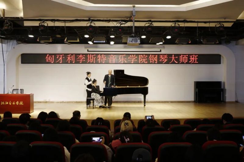 在沈阳音乐学院建校85周年之际,匈牙利李斯特音乐学院著名钢琴家大卫·鲍尔、小提琴教授亚当·班达受邀于2023年10月28日在长青校区为音乐教育学院师生举办大师班讲学及音乐会活动。国际交流合作处处长梁风雁、音乐教育学院院长吴家军、副院长崔姝声及音乐教育系、键盘器乐教育系、管弦器乐教育系师生代表共计600余人参加此次活动。