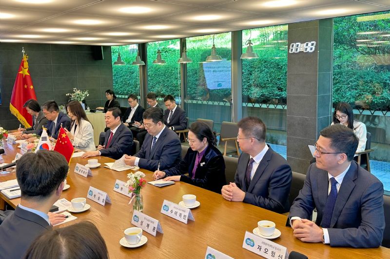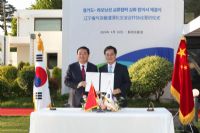 郝鹏在与金东兖会见时谈到,去年10月,两省道结好30周年之际,知事先生到访沈阳,我们共同举行了丰富多彩的纪念活动,签署了两省道《共同宣言》,为进一步拓展相关领域务实合作奠定了坚实基础。时隔近6个月,在美丽的水原与知事再次见面,感到格外亲切。代表团一行一踏上水原的土地就感受到京畿道人民的热情。京畿道经济的活跃、文化的繁荣、环境的优美和社会的和谐令人印象深刻。当前,辽宁经济社会发展保持良好态势,各项工作呈现新变化、新气象,为双方进一步加强合作创造了更多有利条件。希望以我们双方互访为契机,进一步在经贸、科技、产业、人文、青少年等领域深化交流合作,携手在中韩地方合作中作出表率。