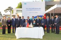 签约仪式上,郝鹏、金东兖共同签署两省道进一步深化交流合作协议,并见证了学院与韩国水原大学《学术交流合作协议》的签署。