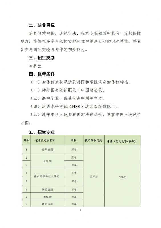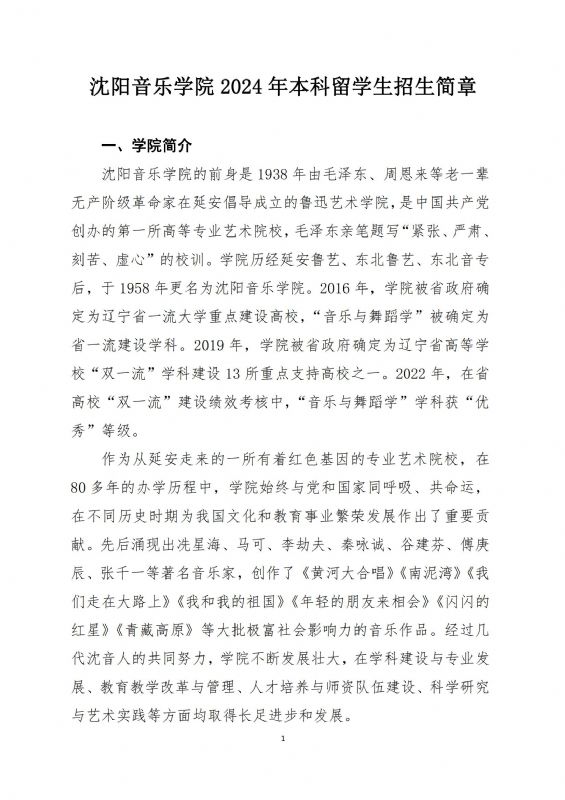 沈阳音乐学院2024年本科留学生招生简章