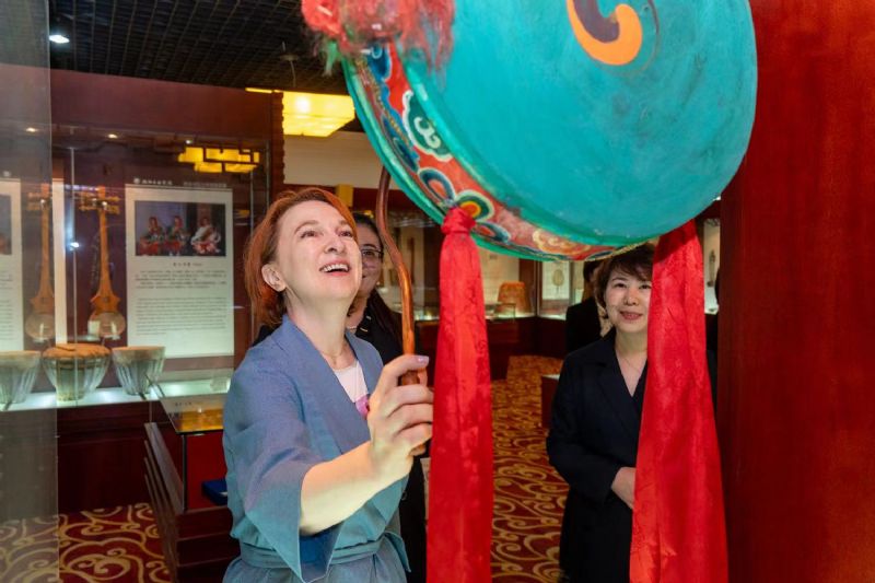座谈会后,叶琳娜·库拉金娜在纪委书记闫玉娇、副院长王硕陪同下,参观了我院民族乐器陈列馆,对中国民族乐器的发展历程以及多样性表示由衷赞赏。