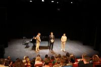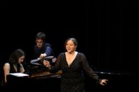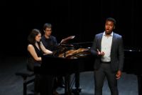 音乐会上,我院声乐歌剧系研究生孟庆鑫、张智超,戏剧影视学院本科生刘艺淳与巴黎国家高等音乐学院的三位学生同台献艺,演唱了多首风格各异的经典声乐作品。学生们凭借丰富的舞台表现力和扎实的演唱功底,赢得现场观众阵阵掌声和喝彩声。